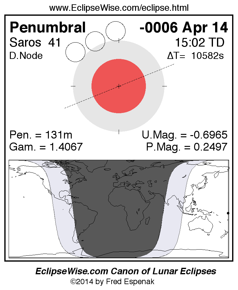 Penumbral Lunar Eclipse of -0006 Apr 14