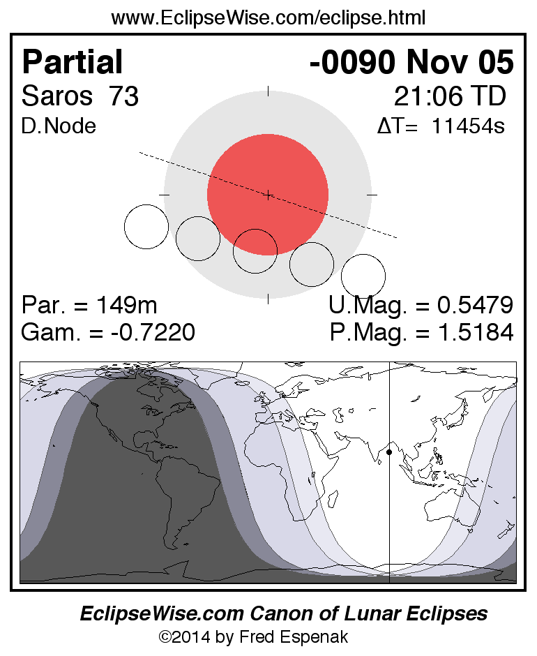 The instant of greatest eclipse takes place on -0090 Nov 05 at 21:05:46 TD (17:54:53 UT1).