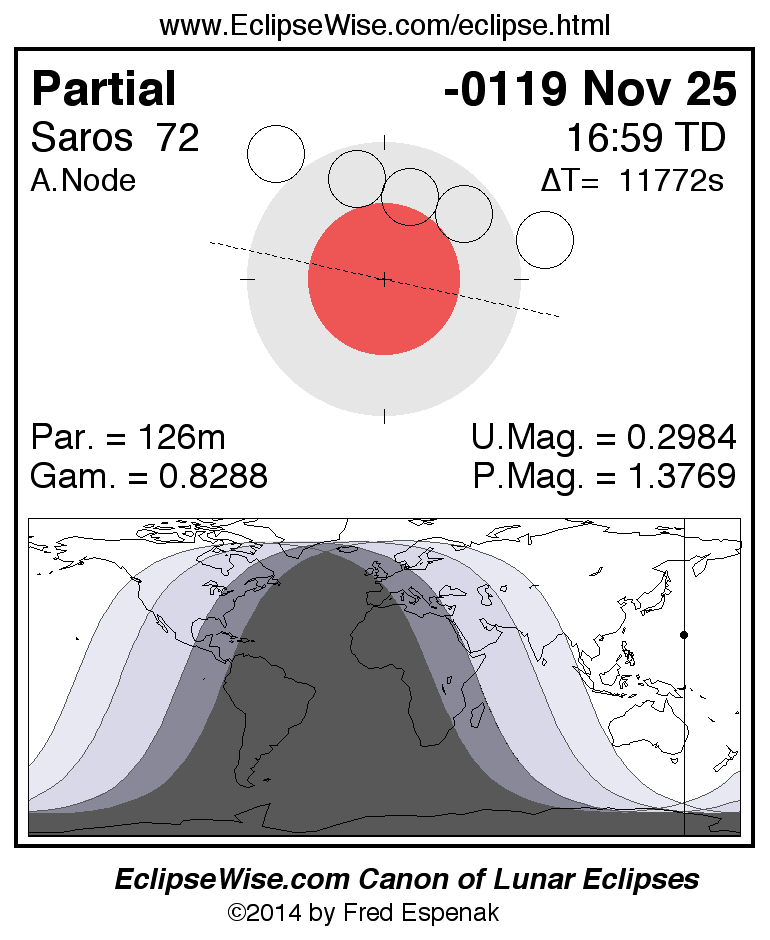 Partial Lunar Eclipse of -0119 Nov 25 (0120 Nov 25 BCE)