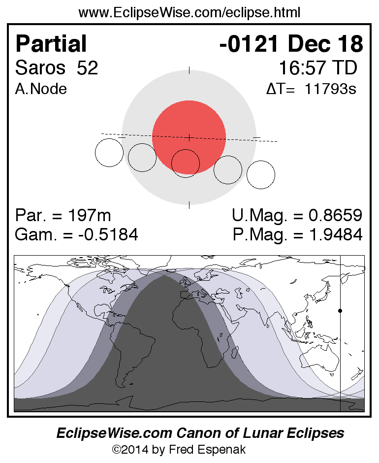 The instant of greatest eclipse takes place on -0121 Dec 18 at 16:57:01 TD (13:40:29 UT1).
