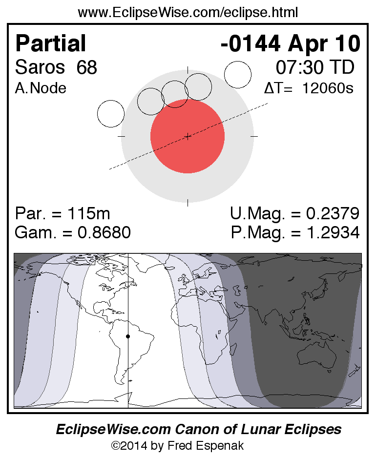 The instant of greatest eclipse takes place on -0144 Apr 10 at 07:29:48 TD (04:08:50 UT1).