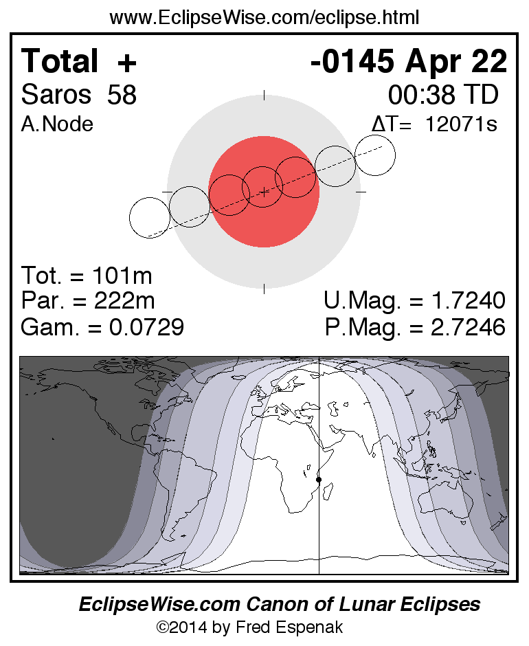 Total Lunar Eclipse of -0145 Apr 22 (0146 Apr 22 BCE)