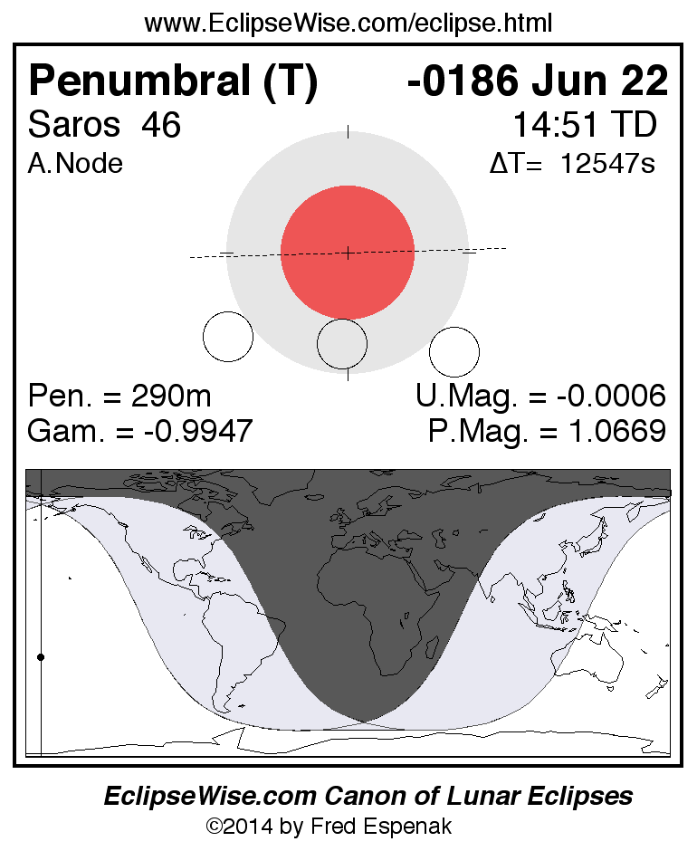 The instant of greatest eclipse takes place on -0186 Jun 22 at 14:51:20 TD (11:22:15 UT1).