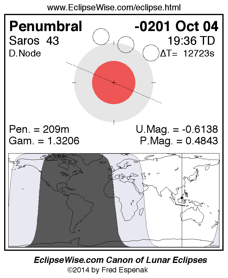 Penumbral Lunar Eclipse of -0201 Oct 04 (0202 Oct 04 BCE)