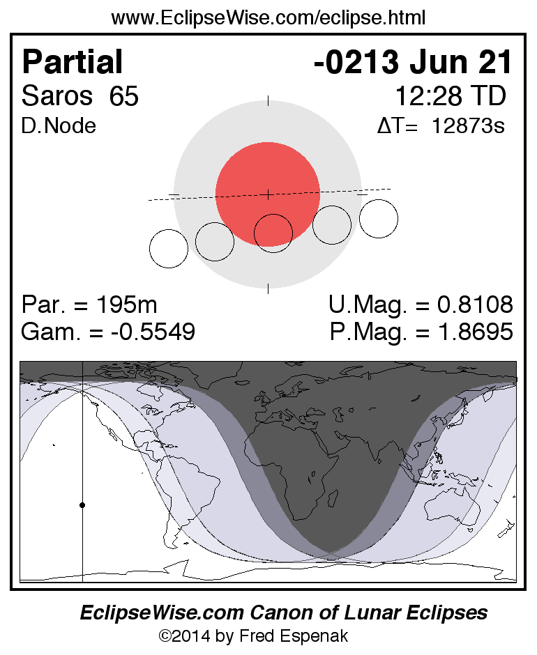 The instant of greatest eclipse takes place on -0213 Jun 21 at 12:27:33 TD (08:53:02 UT1).