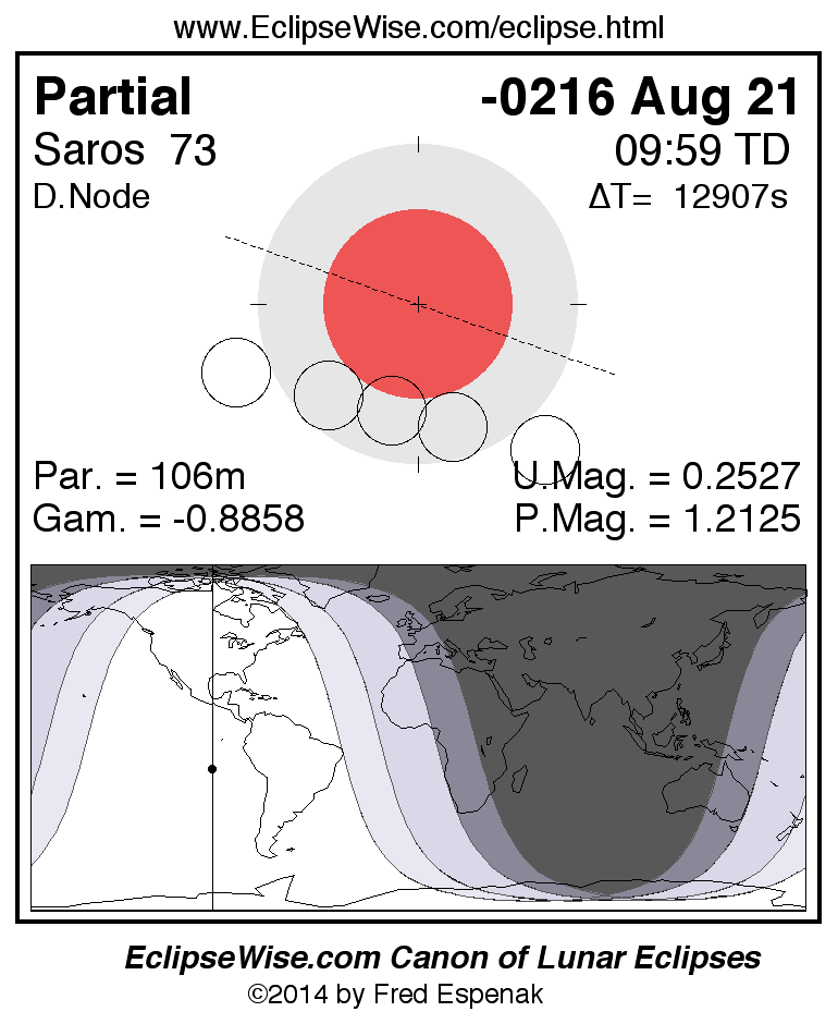 Partial Lunar Eclipse of -0216 Aug 21 (0217 Aug 21 BCE)