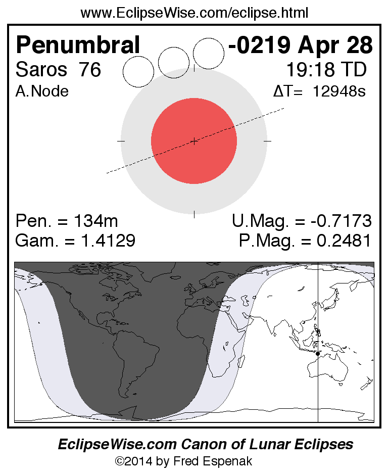 The instant of greatest eclipse takes place on -0219 Apr 28 at 19:18:01 TD (15:42:15 UT1).