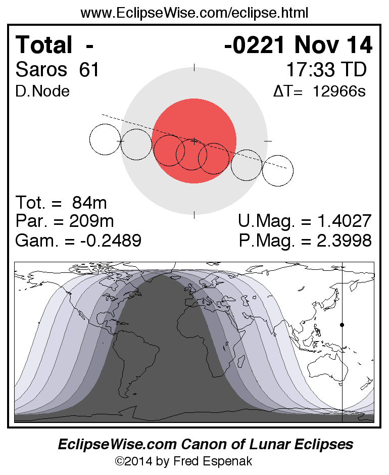 Total Lunar Eclipse of -0221 Nov 14 (0222 Nov 14 BCE)