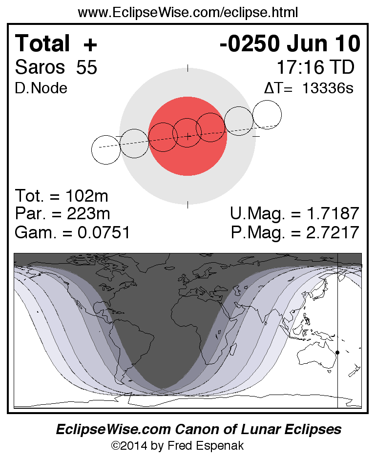 Total Lunar Eclipse of -0250 Jun 10 (0251 Jun 10 BCE)