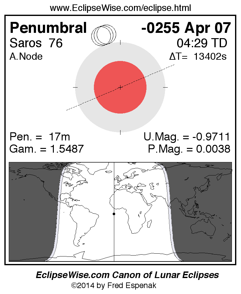 Penumbral Lunar Eclipse of -0255 Apr 07 (0256 Apr 07 BCE)
