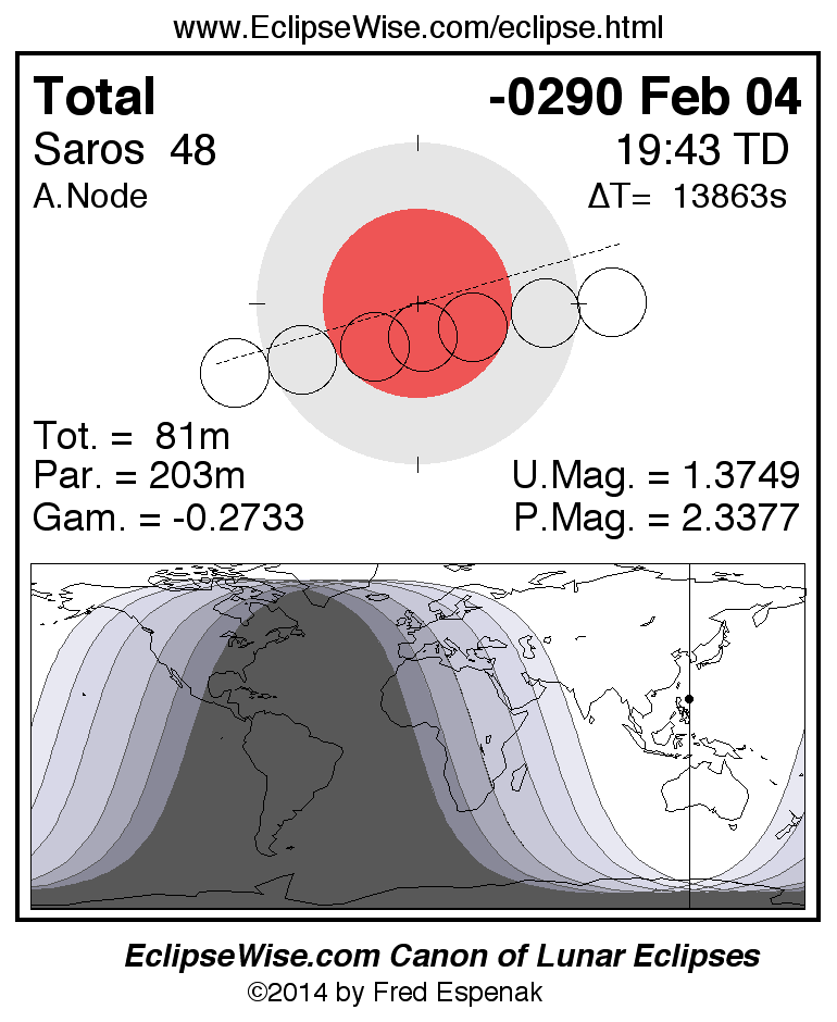 Total Lunar Eclipse of -0290 Feb 04 (0291 Feb 04 BCE)