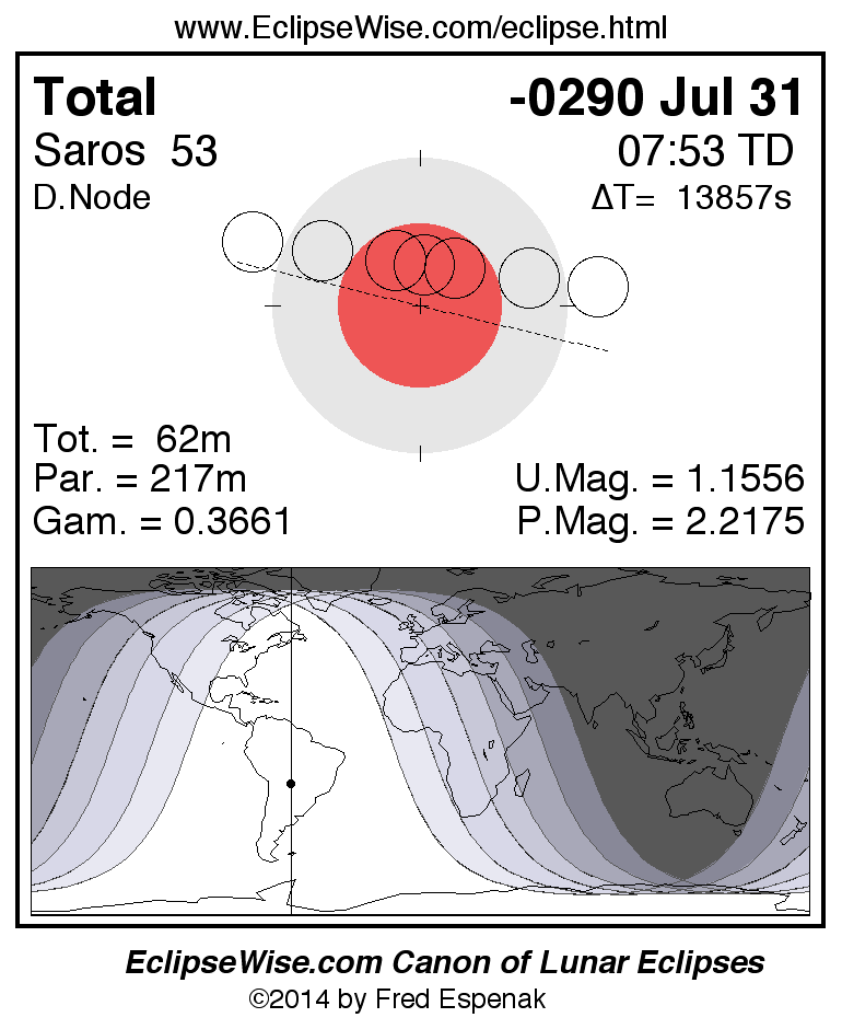 Total Lunar Eclipse of -0290 Jul 31 (0291 Jul 31 BCE)