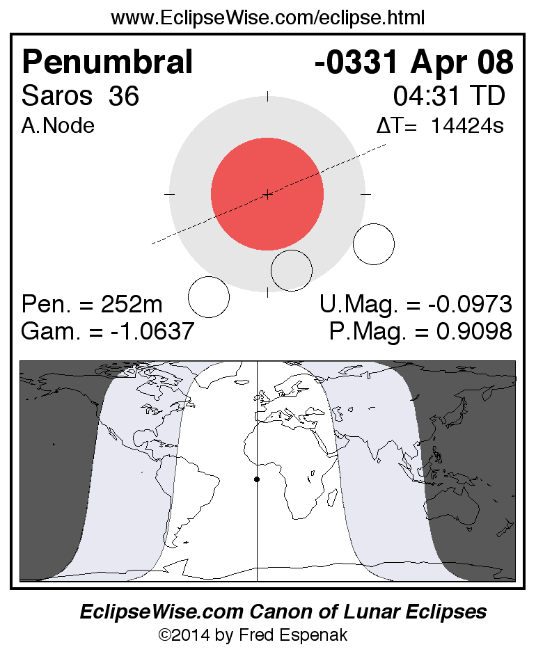 Penumbral Lunar Eclipse of -0331 Apr 08 (0332 Apr 08 BCE)