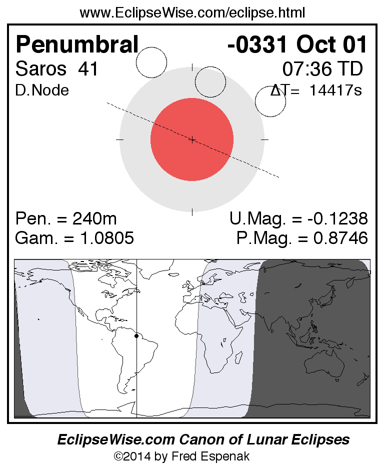 Penumbral Lunar Eclipse of -0331 Oct 01 (0332 Oct 01 BCE)