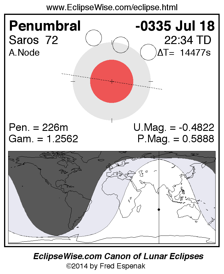 The instant of greatest eclipse takes place on -0335 Jul 18 at 22:33:40 TD (18:32:26 UT1).