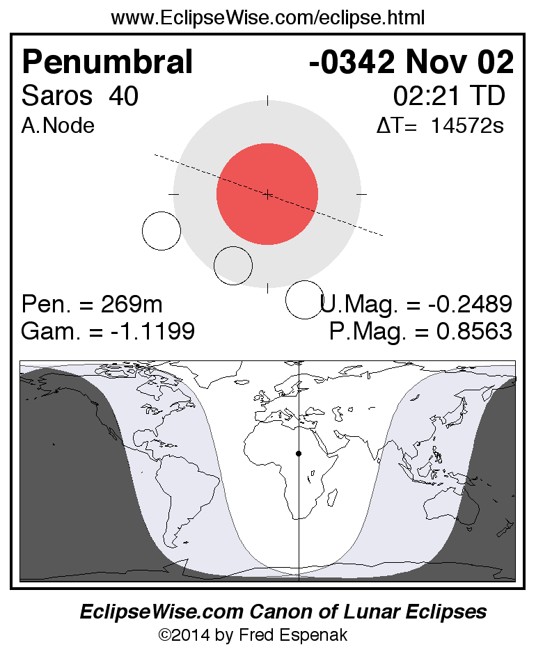 Penumbral Lunar Eclipse of -0342 Nov 02 (0343 Nov 02 BCE)