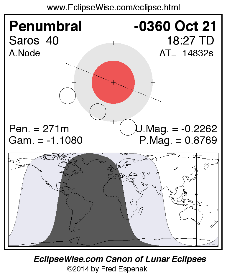 Penumbral Lunar Eclipse of -0360 Oct 21 (0361 Oct 21 BCE)