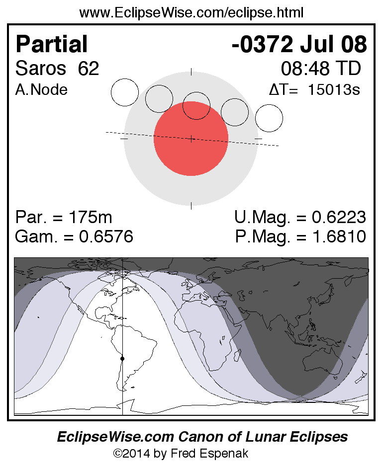 The instant of greatest eclipse takes place on -0372 Jul 08 at 08:48:18 TD (04:38:07 UT1).