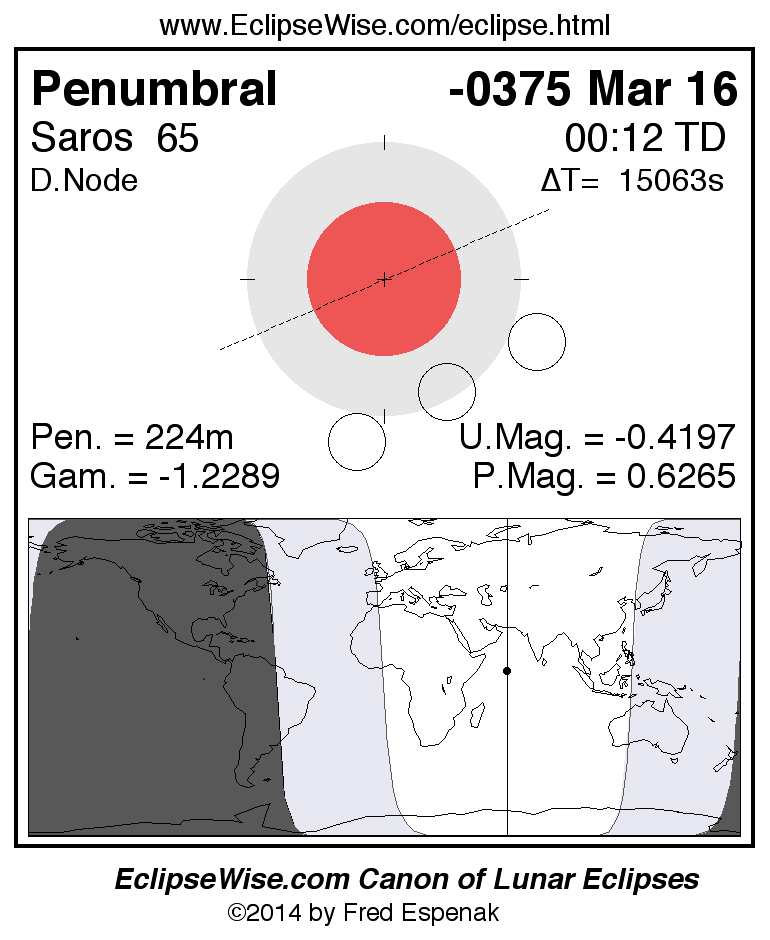 Penumbral Lunar Eclipse of -0375 Mar 16 (0376 Mar 16 BCE)