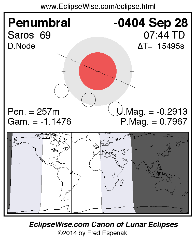 Penumbral Lunar Eclipse of -0404 Sep 28 (0405 Sep 28 BCE)
