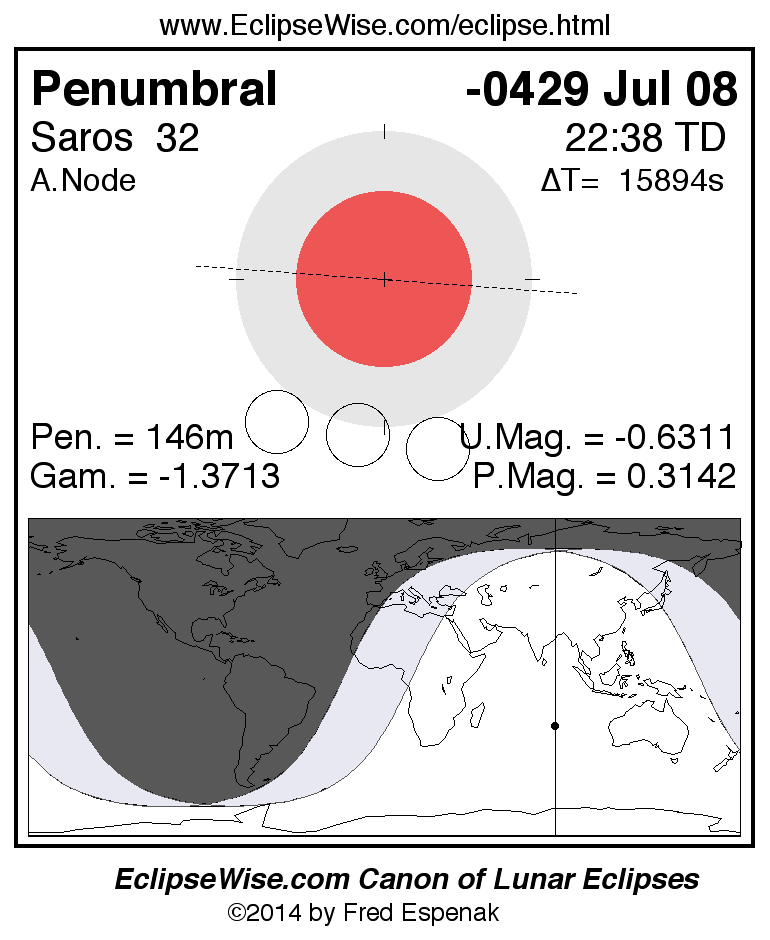 Penumbral Lunar Eclipse of -0429 Jul 08 (0430 Jul 08 BCE)