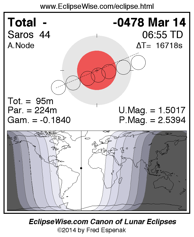 The instant of greatest eclipse takes place on -0478 Mar 14 at 06:55:28 TD (02:16:52 UT1).
