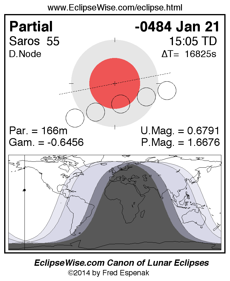 The instant of greatest eclipse takes place on -0484 Jan 21 at 15:05:09 TD (10:24:47 UT1).
