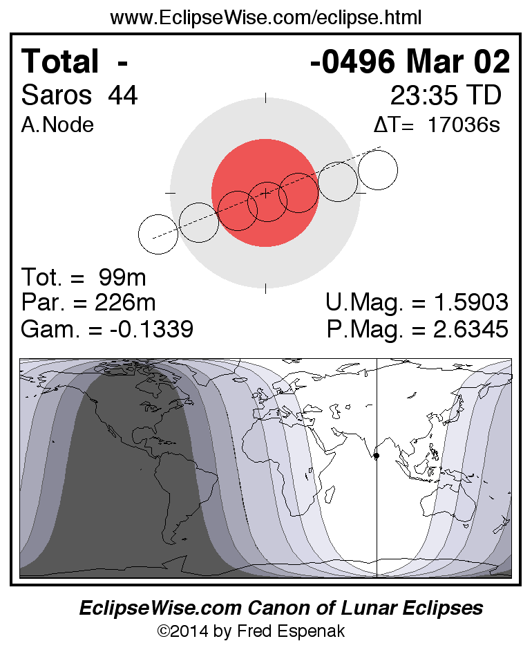 Total Lunar Eclipse of -0496 Mar 02 (0497 Mar 02 BCE)