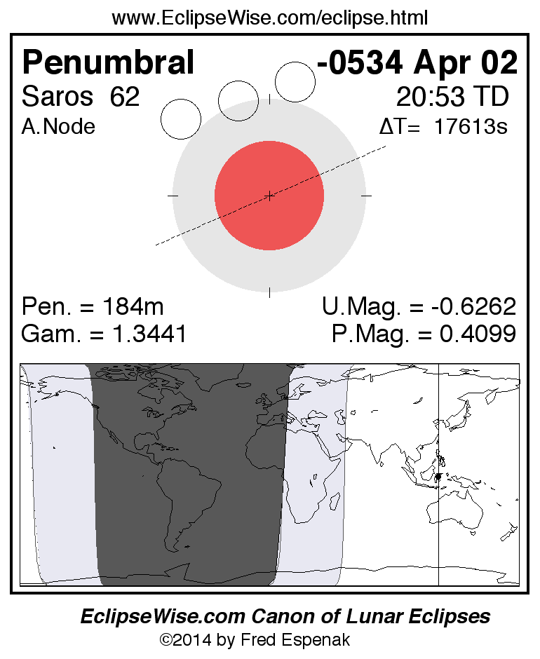 The instant of greatest eclipse takes place on -0534 Apr 02 at 20:53:04 TD (15:59:34 UT1).
