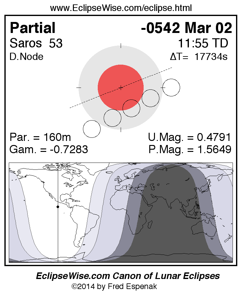 The partial lunar eclipse of -0542 Mar 02 is preceded two weeks earlier by a total solar eclipse on -0542 Feb 15.