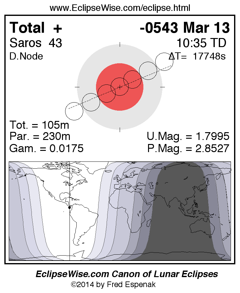 Total Lunar Eclipse of -0543 Mar 13 (0544 Mar 13 BCE)