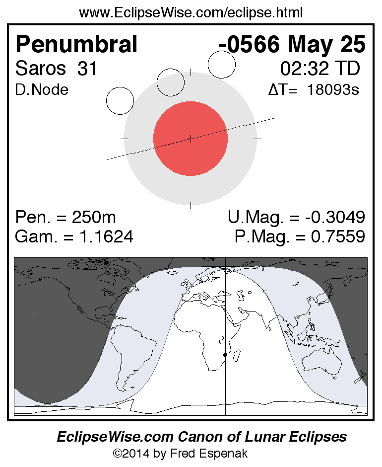 Penumbral Lunar Eclipse of -0566 May 25