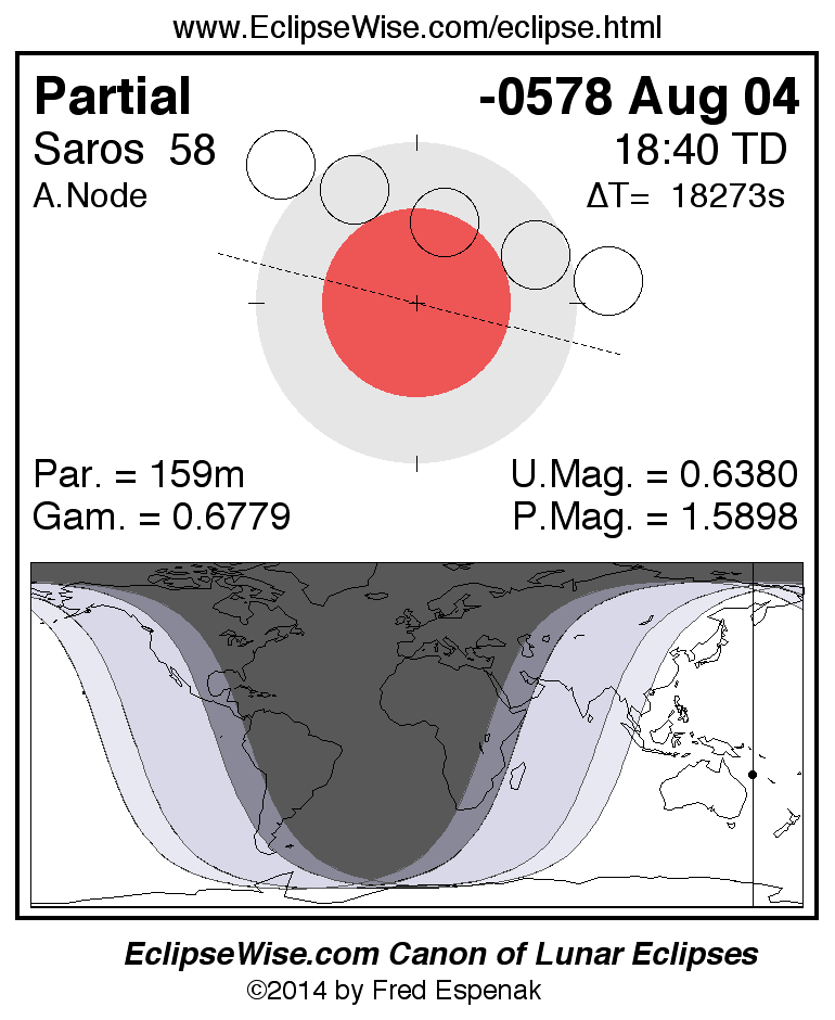 The instant of greatest eclipse takes place on -0578 Aug 04 at 18:40:20 TD (13:35:49 UT1).