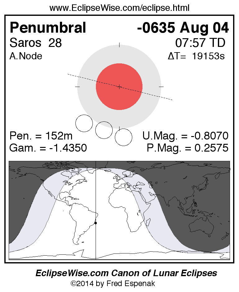 The instant of greatest eclipse takes place on -0635 Aug 04 at 07:56:60 TD (02:37:49 UT1).