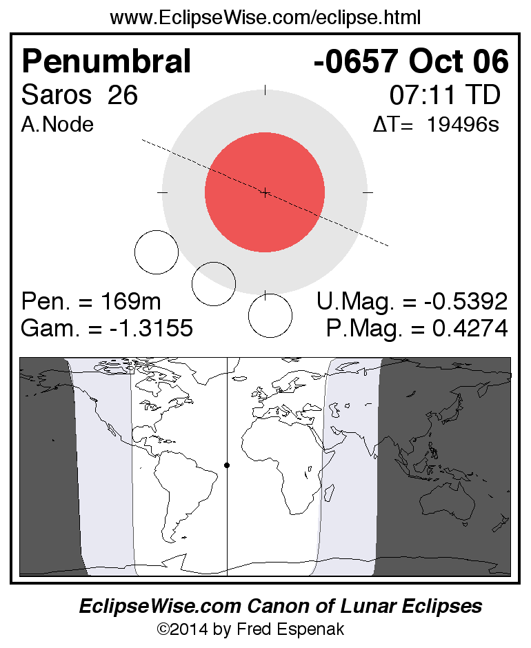 Penumbral Lunar Eclipse of -0657 Oct 06 (0658 Oct 06 BCE)