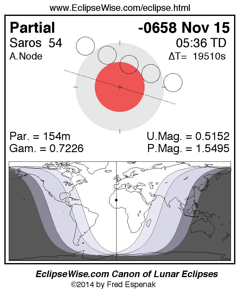 The instant of greatest eclipse takes place on -0658 Nov 15 at 05:35:31 TD (00:10:23 UT1).
