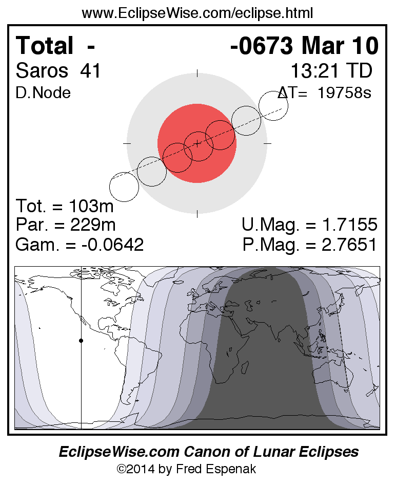 Total Lunar Eclipse of -0673 Mar 10 (0674 Mar 10 BCE)