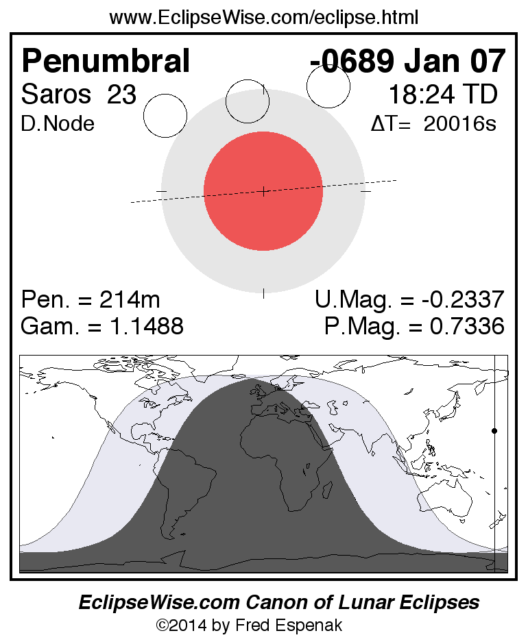 Penumbral Lunar Eclipse of -0689 Jan 07 (0690 Jan 07 BCE)