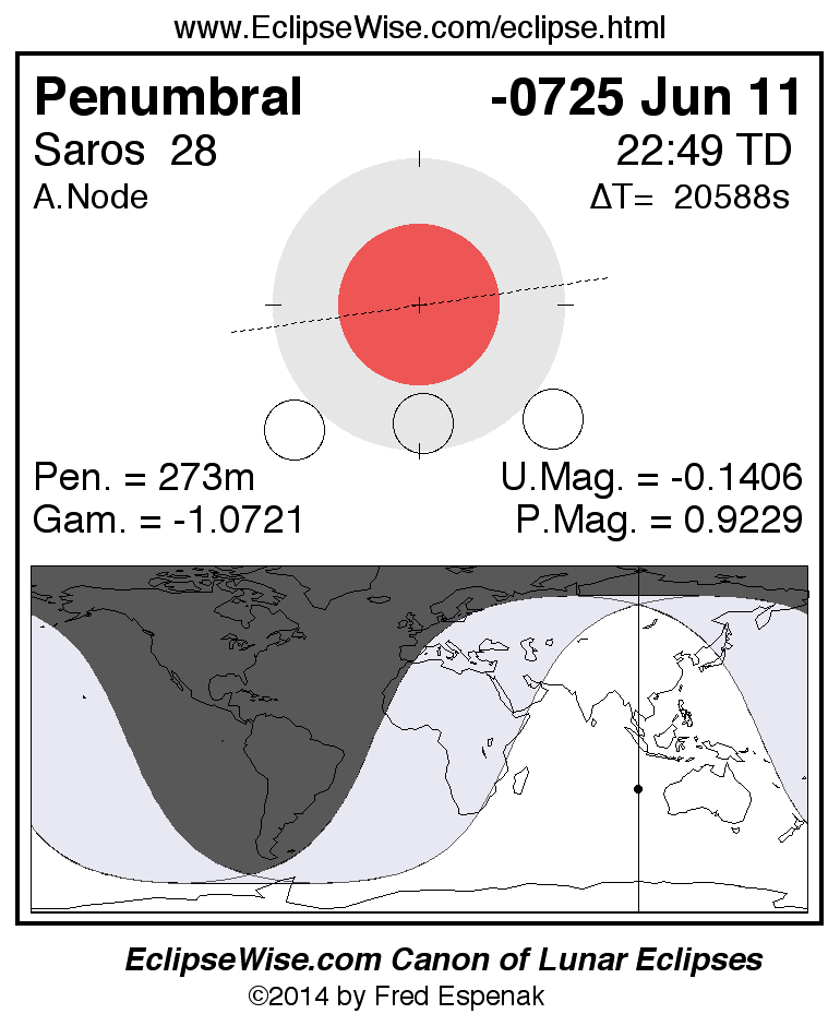Penumbral Lunar Eclipse of -0725 Jun 11 (0726 Jun 11 BCE)