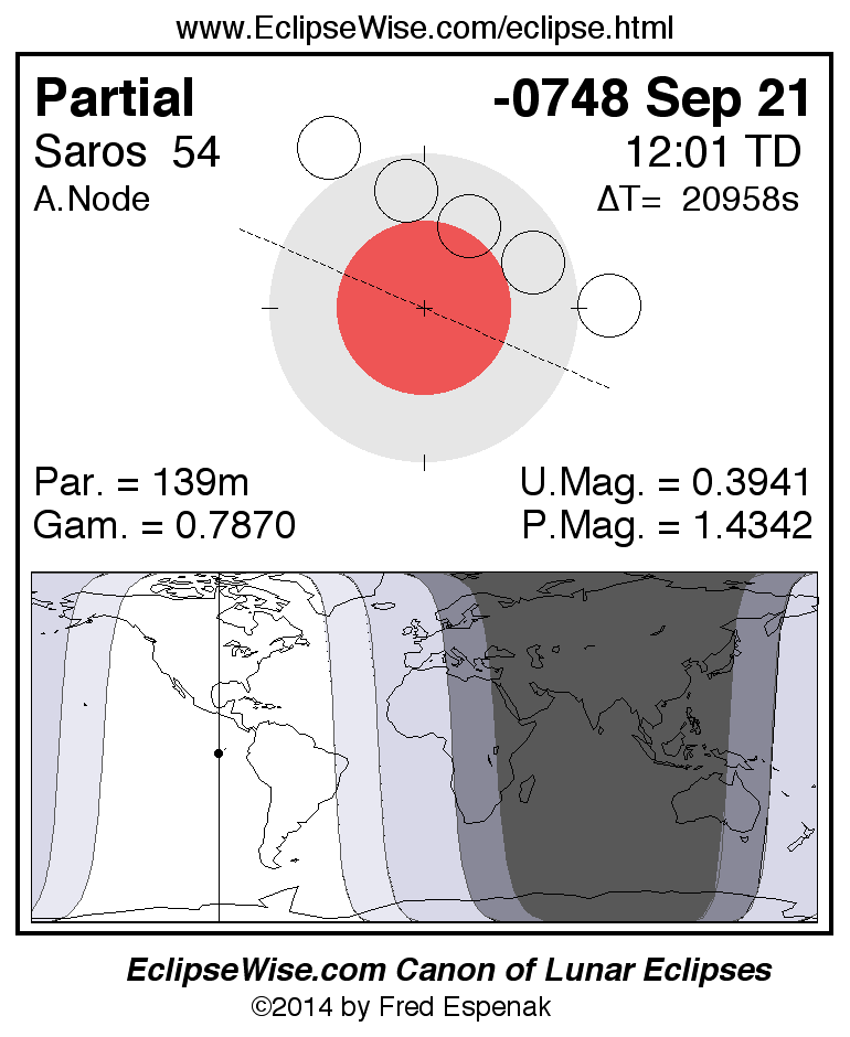The instant of greatest eclipse takes place on -0748 Sep 21 at 12:01:01 TD (06:11:46 UT1).