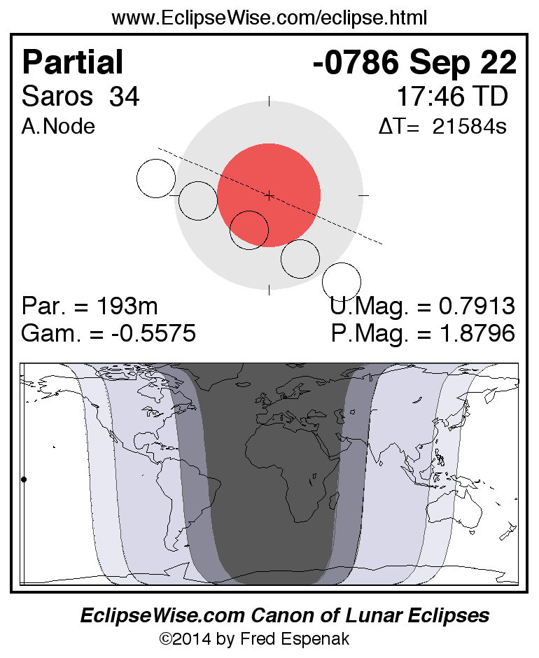 The partial lunar eclipse of -0786 Sep 22 is followed two weeks later by a total solar eclipse on -0786 Oct 07.