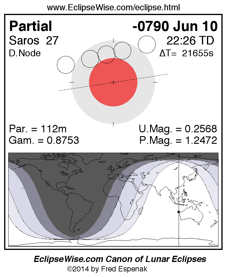 The instant of greatest eclipse takes place on -0790 Jun 10 at 22:25:34 TD (16:24:42 UT1).