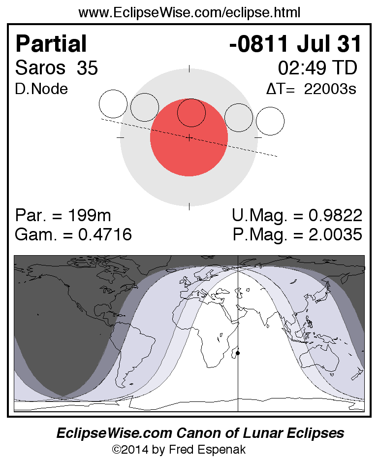 The instant of greatest eclipse takes place on -0811 Jul 31 at 02:49:03 TD (20:42:23 UT1).
