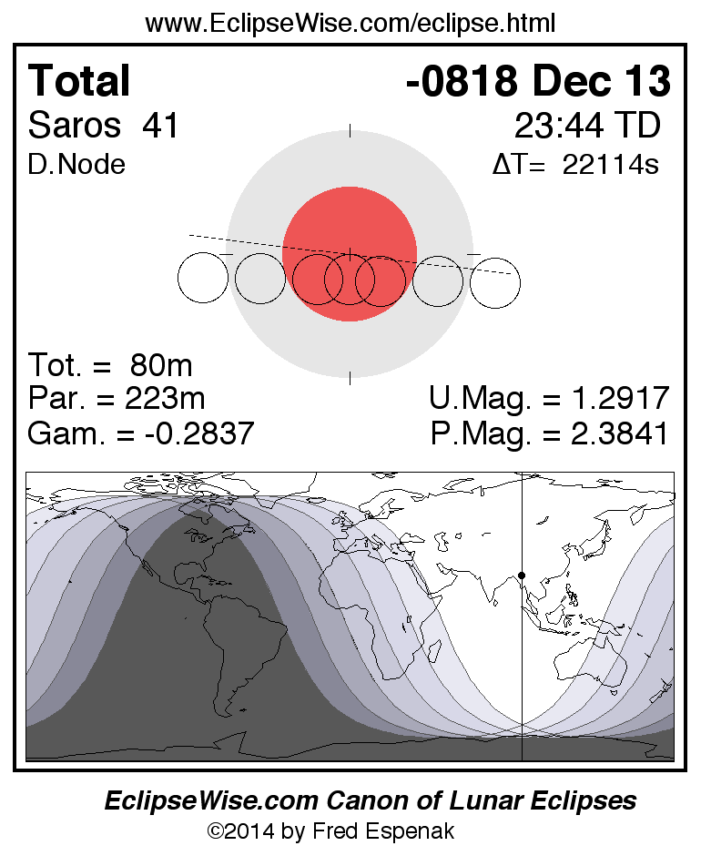 Total Lunar Eclipse of -0818 Dec 13 (0819 Dec 13 BCE)