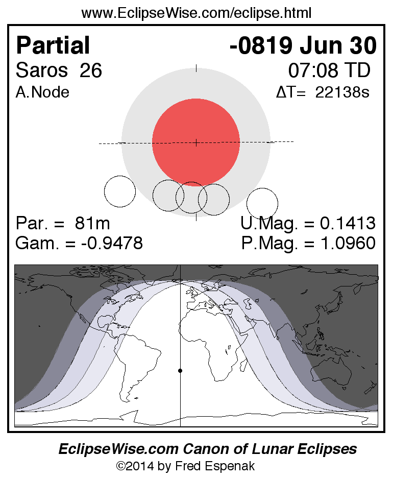 The instant of greatest eclipse takes place on -0819 Jun 30 at 07:07:35 TD (00:58:39 UT1).