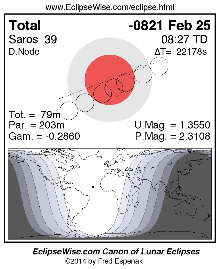 Total Lunar Eclipse of -0821 Feb 25 (0822 Feb 25 BCE)