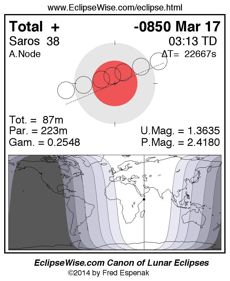 Total Lunar Eclipse of -0850 Mar 17 (0851 Mar 17 BCE)