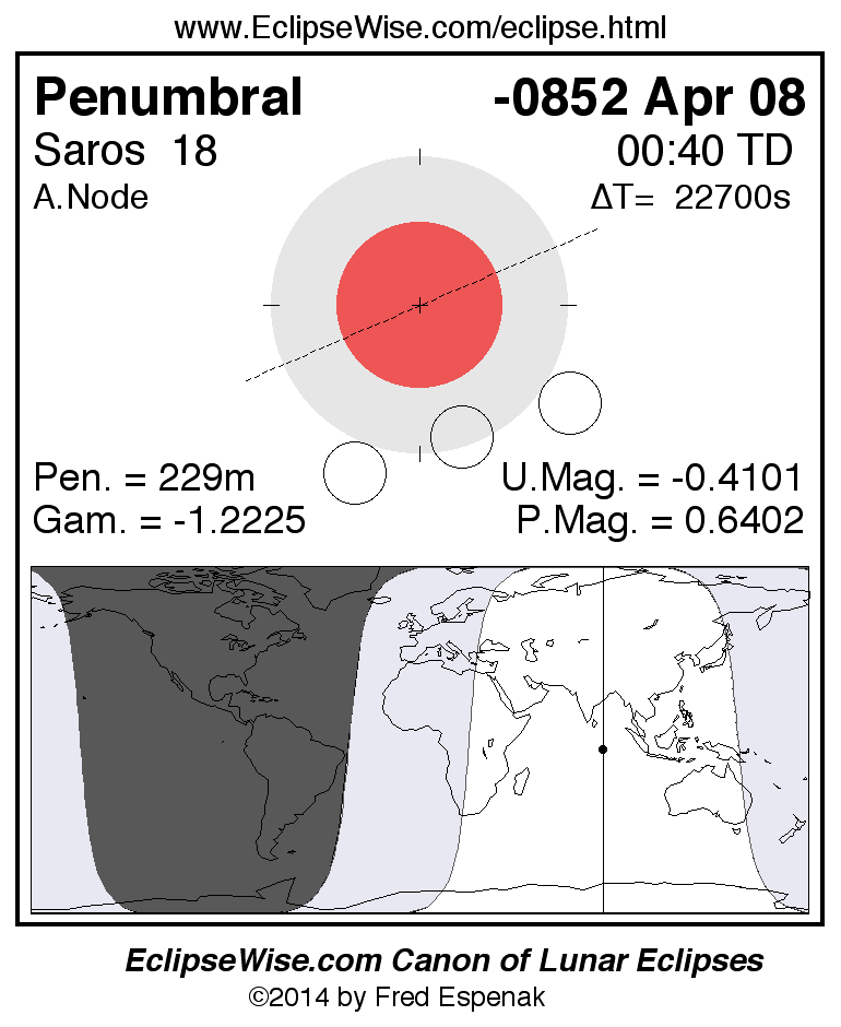 Penumbral Lunar Eclipse of -0852 Apr 08 (0853 Apr 08 BCE)
