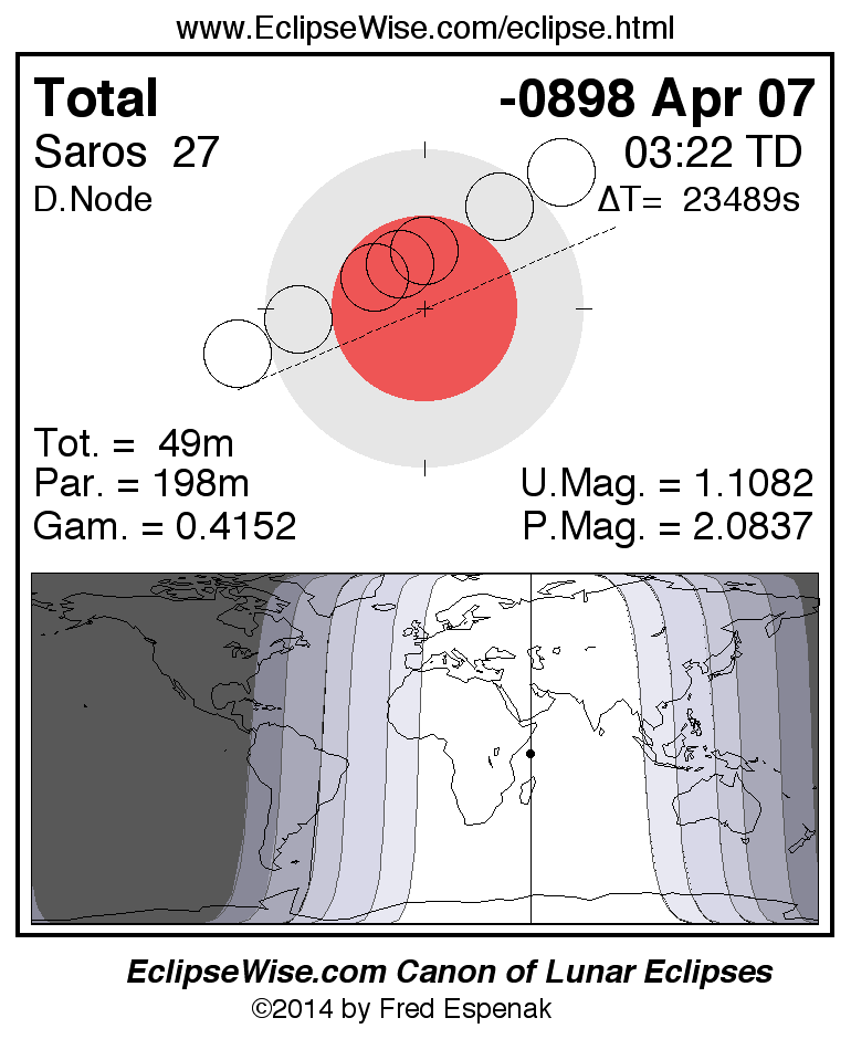 Total Lunar Eclipse of -0898 Apr 07 (0899 Apr 07 BCE)
