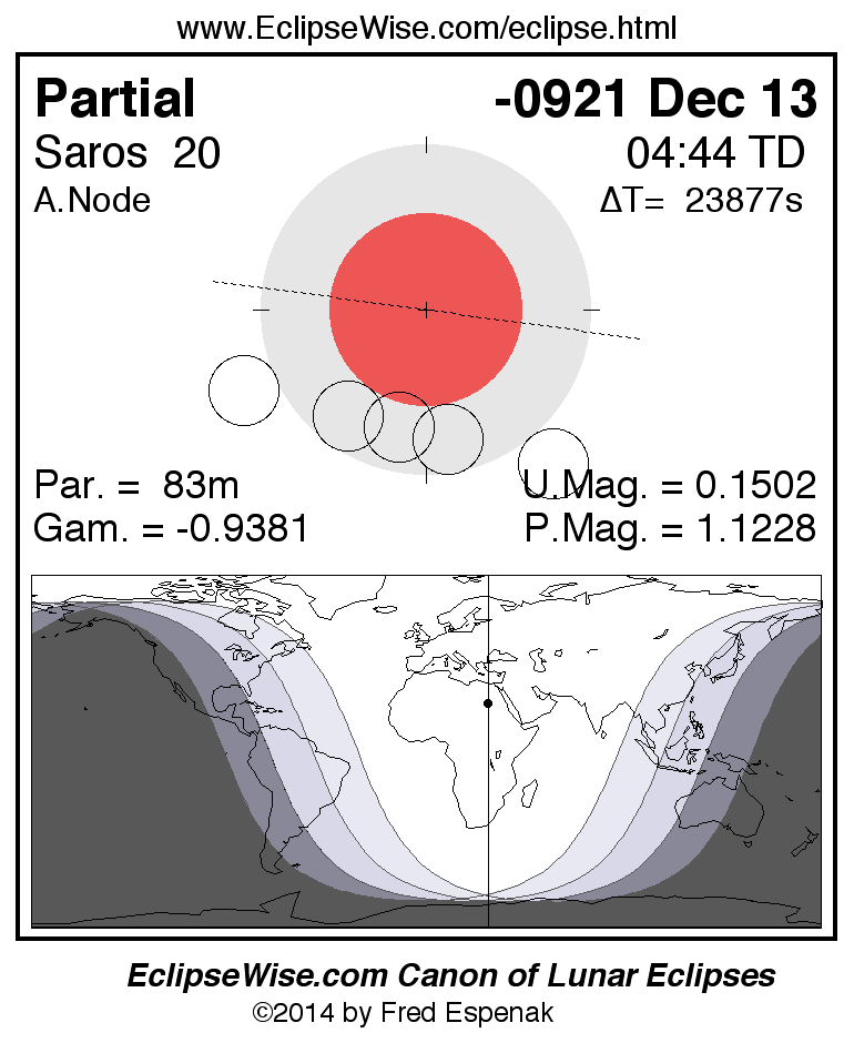 The instant of greatest eclipse takes place on -0921 Dec 13 at 04:43:49 TD (22:05:54 UT1).